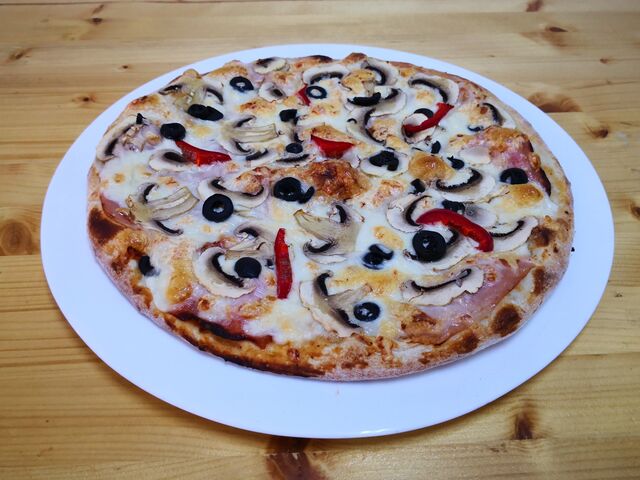 Aluatul nostru pufos și crocant este acoperit cu cea mai bună selecție de ingrediente.